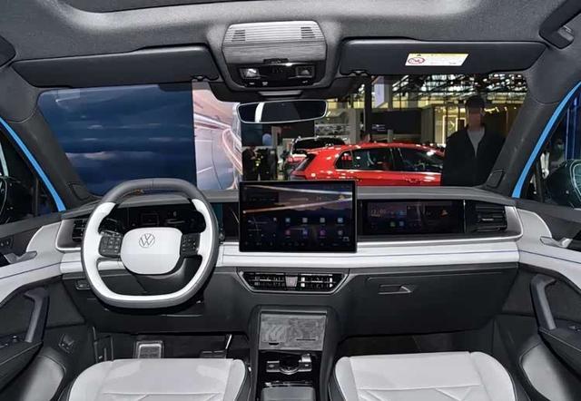 内饰整体布局与途观L Pro相似,但换装了全新样式的中控屏和双辐式方向盘,并采用怀挡式换挡机构,配备全景天幕。