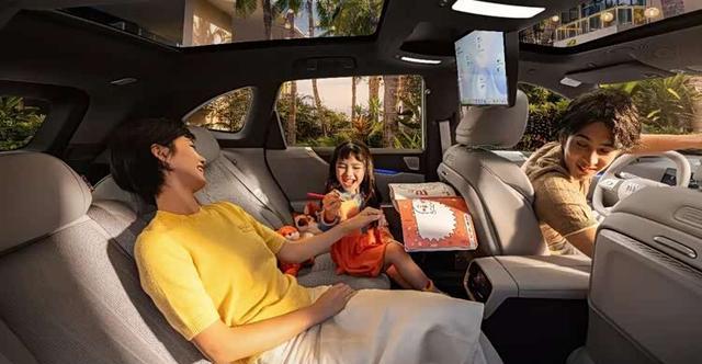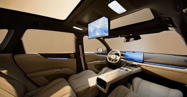 车内配备悬浮式仪表盘与中控屏,内置高通骁龙8775P芯片。二排配备15.6英寸影院屏、搭载20扬声器环绕音响、256色智能交互氛围灯多功能小桌板、冷暖箱、副驾零重力躺椅,四个主座均配备悬浮层座椅,支持三档加热与通风功能。前风挡与四个车门均标配5mm双层夹胶静音玻璃,同时配备后排隐私玻璃。