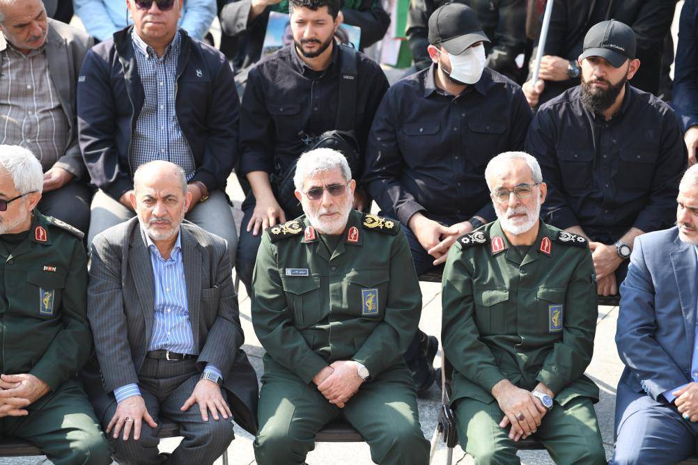 2024年10月15日,卡尼(前中)在伊朗德黑兰参加为伊斯兰革命卫队高级将领尼尔福鲁尚举办的葬礼。新华社记者沙达提摄
