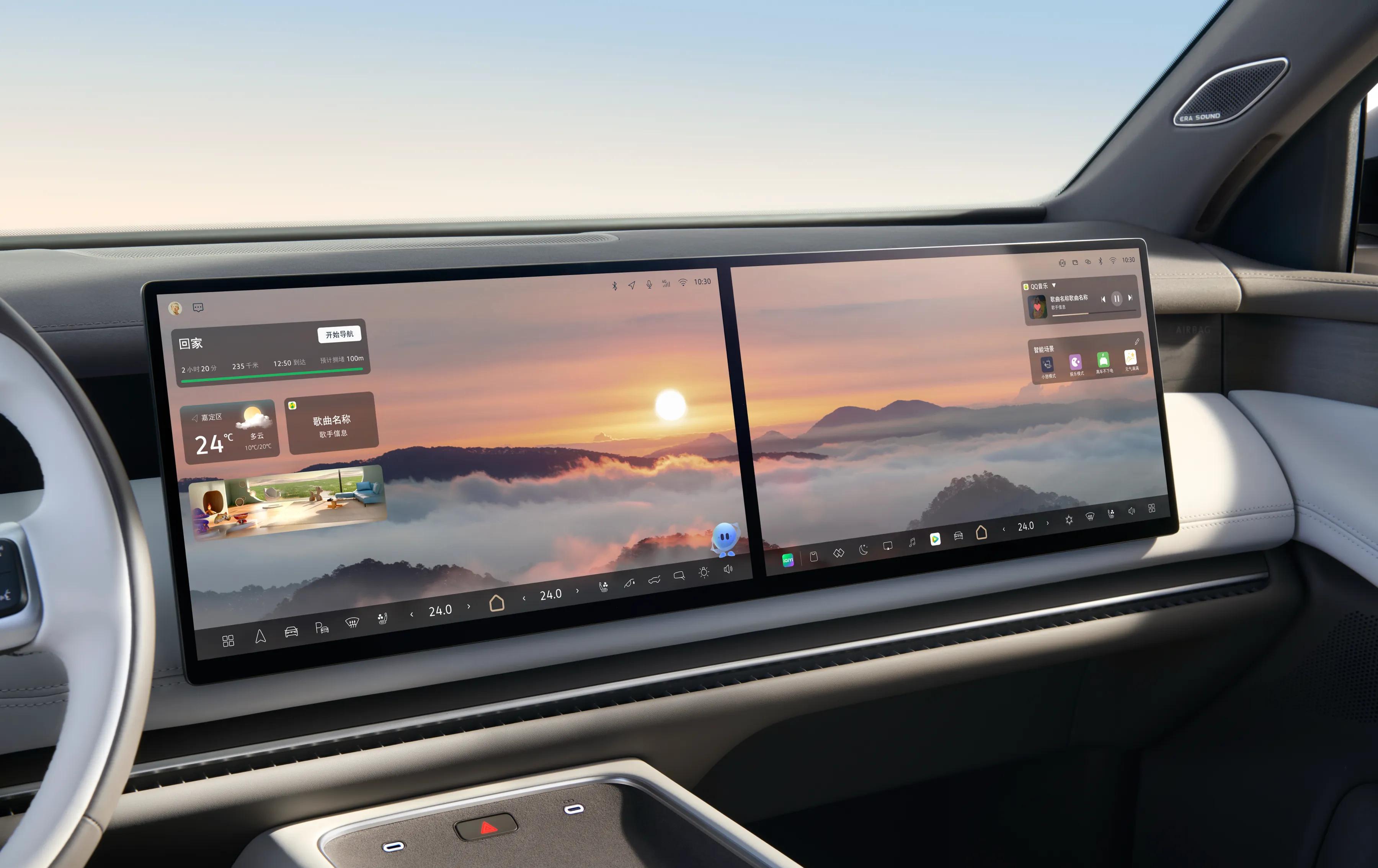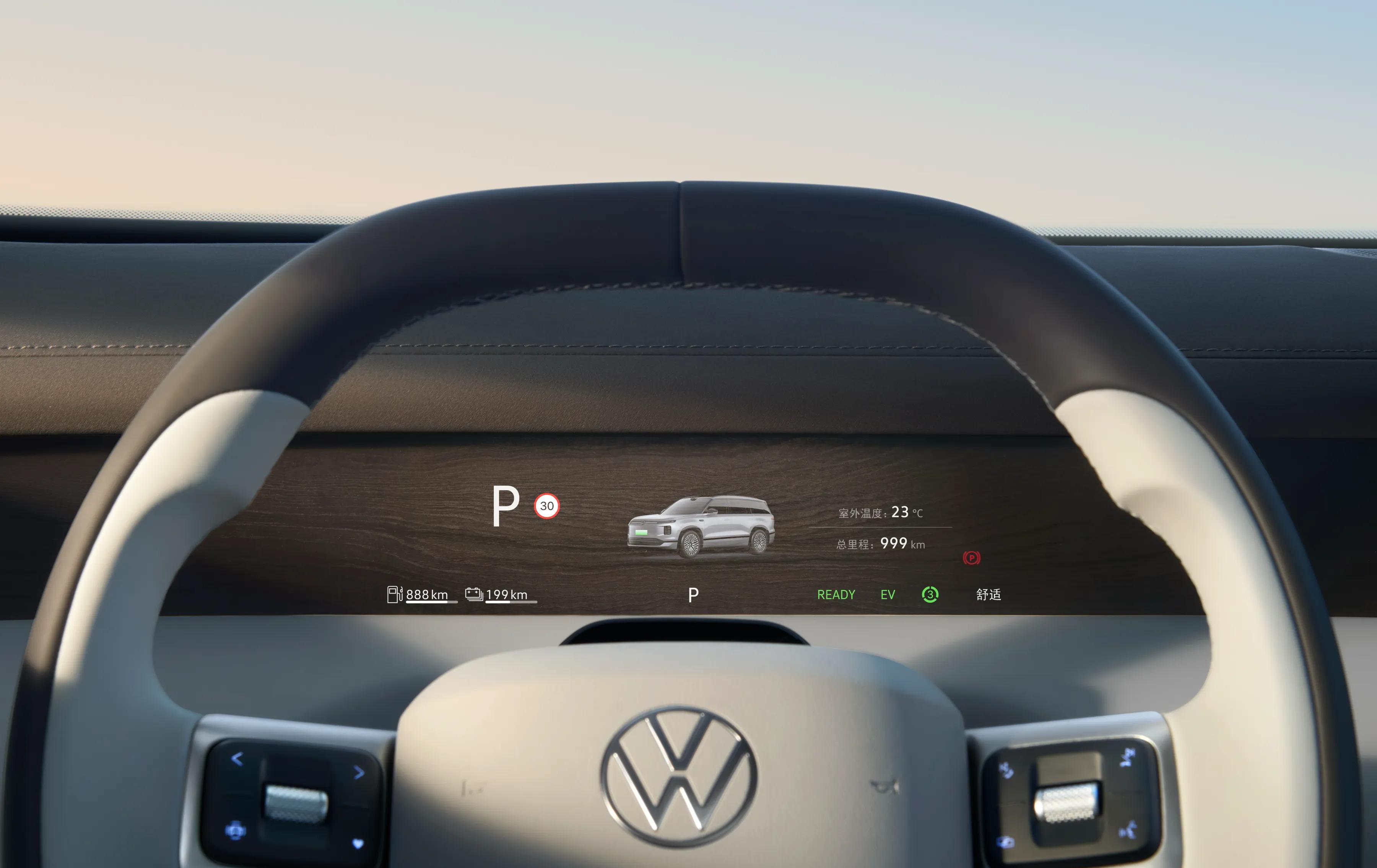 座舱里的九屏联动更是惊喜,魔术屏平时隐在木纹里,需要时才唤醒,后排门板屏还能显示侧后方路况,防止“开门杀”;吸顶屏跟着座椅角度转,躺着看剧也舒服。智能WHUD自动追着眼球调投影,“大众精灵”随叫随到,再配上首发的ERA SOUND音响,出行变成了一种享受。