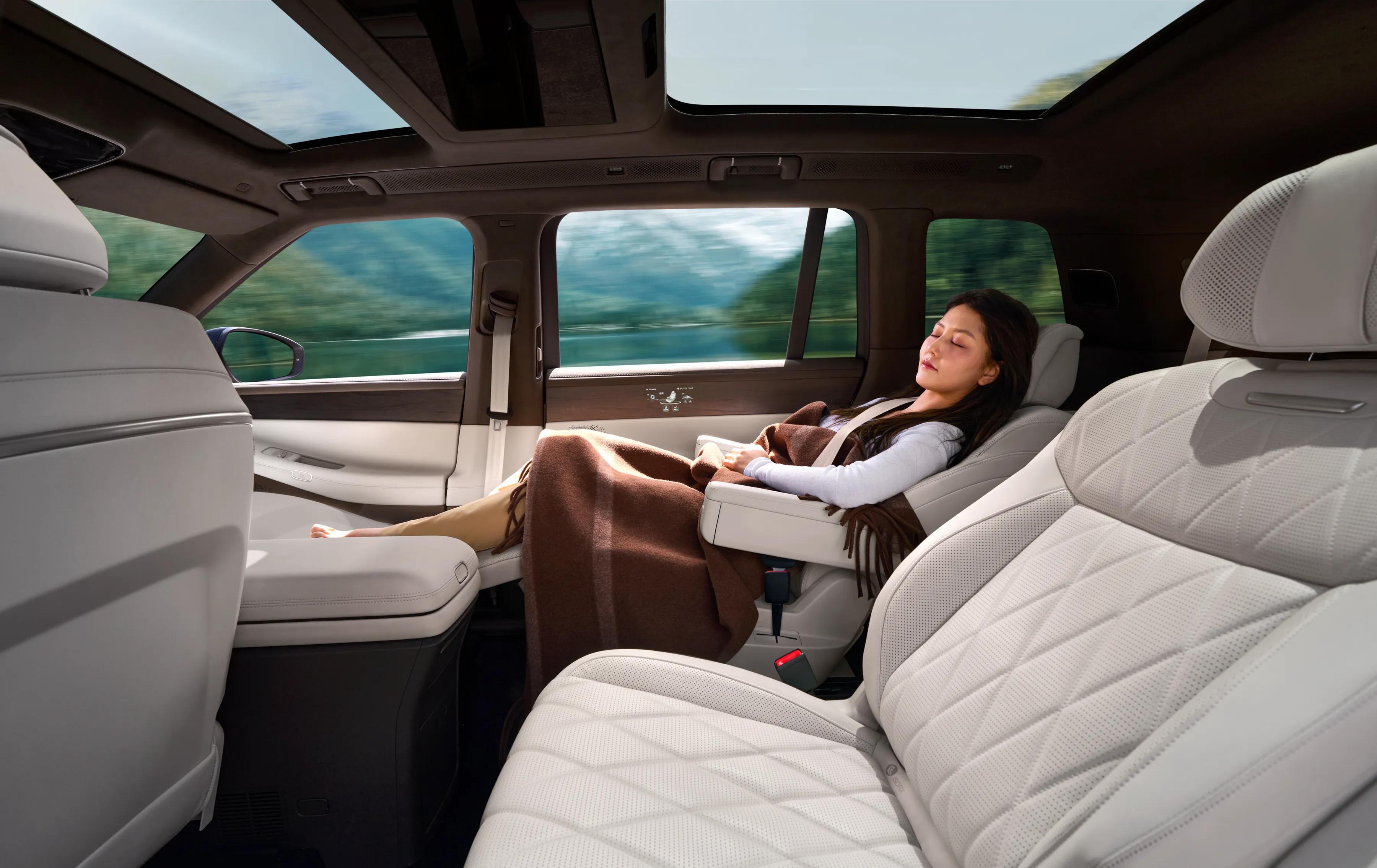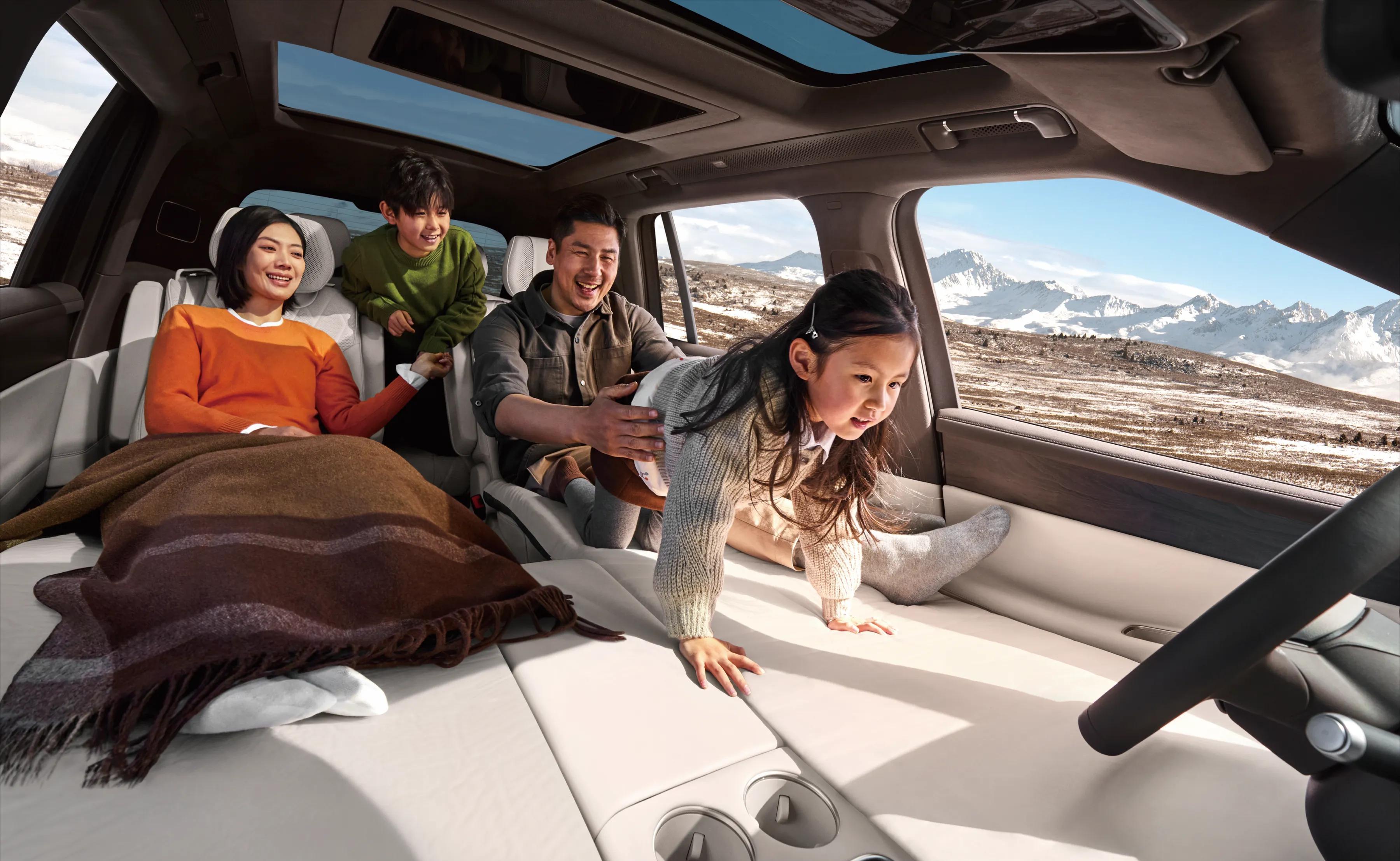 用料方面确实下了本,ID. ERA 9X的“云栖智舱”,把“人本科技”揉进了出行的每一处细节。老人小孩上车不用费劲抬腿,车身会自动“蹲下来”;后备箱开启也会降身,搬行李再也不用踮脚。遇到路面不平,一键就能调平车身,车内始终稳稳当当。