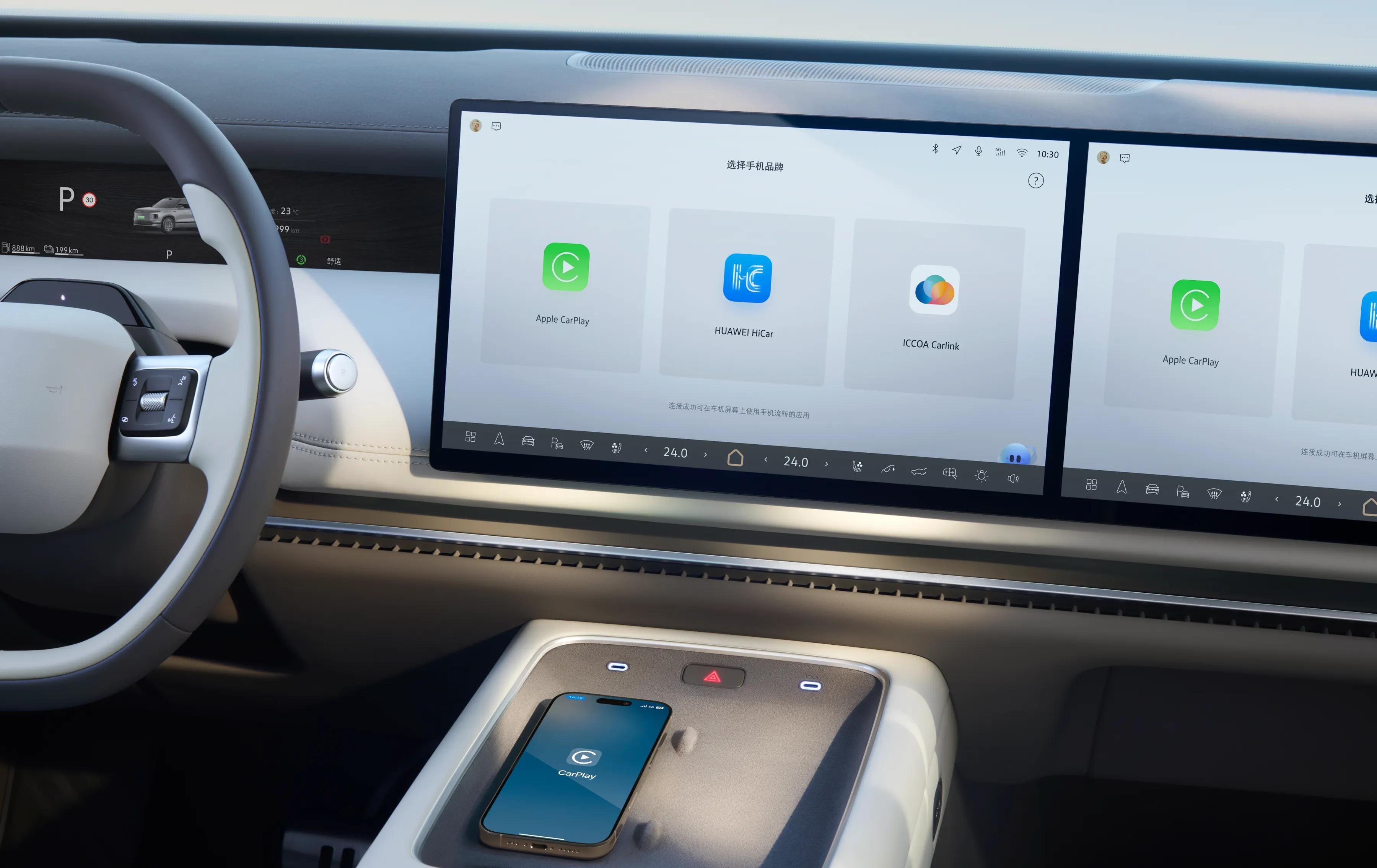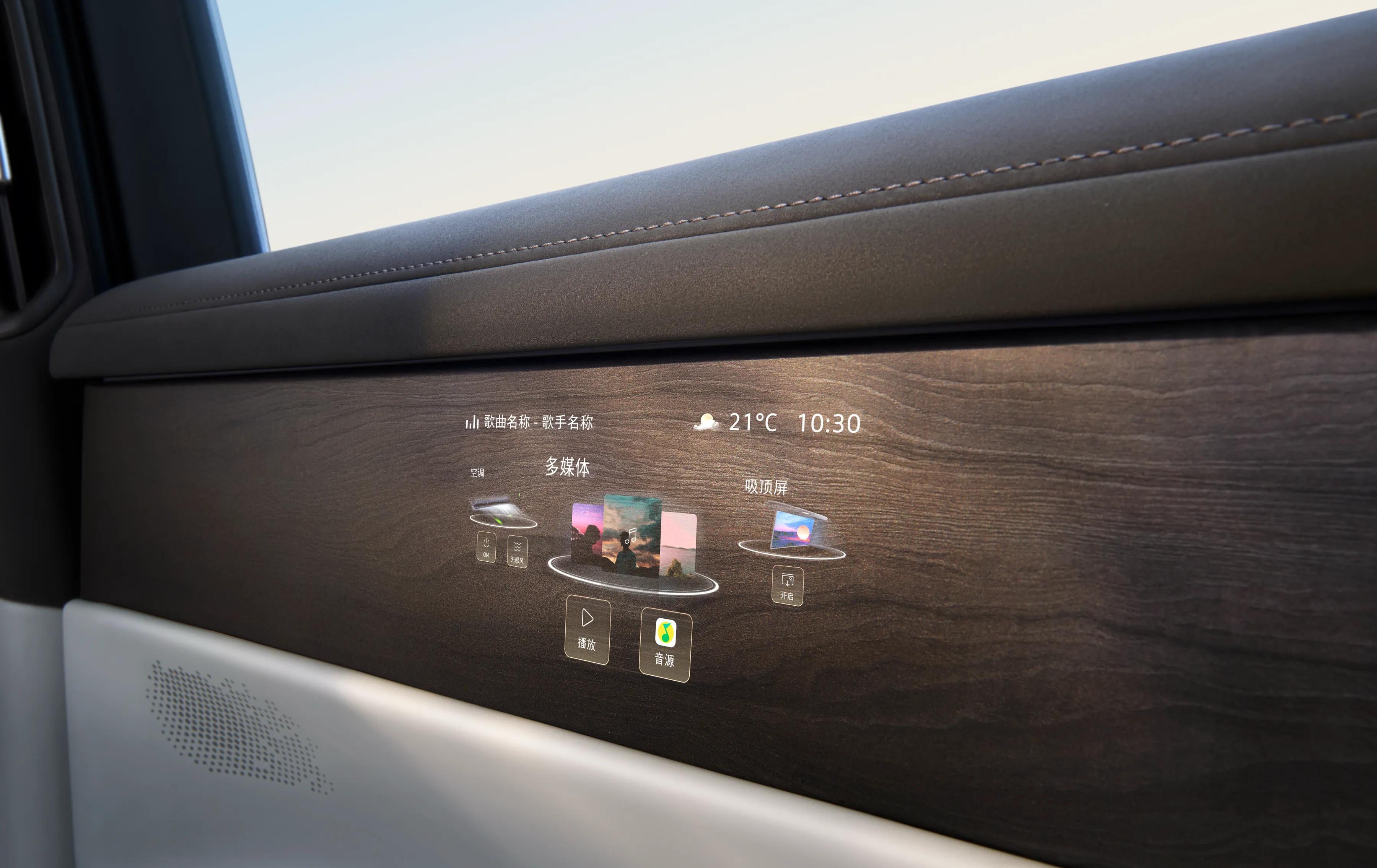 坐进车内,我先选了米色内饰,销售说橙内饰晴天会有后视镜反光,果然没选错。最吸引我的是那个隐藏在木纹饰板里的“魔术屏”,之前看图片以为是噱头,实际用起来才发现真香,平时和内饰融为一体,需要时轻轻一碰就亮起来,显示清晰还跟手,比我预想的好用太多。不过后排的屏幕就差点意思,自动亮度偏暗,得手动调亮才能看清。